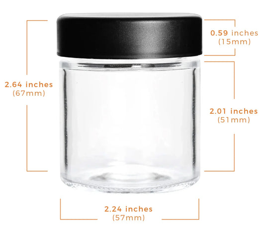 5mL Non-CR Glass Jar - Black Plastic Lids